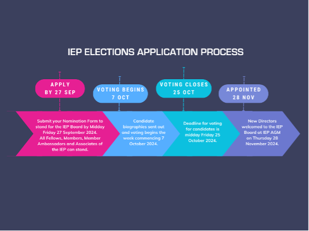 There’s still time to get your application in and stand for the IEP Board! With three upcoming vacancies on the Board, we are calling on our Members, Associates, and Fellows to answer the call and participate in shaping our future leadership. This annual election offers a valuable opportunity for members from diverse backgrounds, particularly those in frontline delivery and management roles, to step forward.