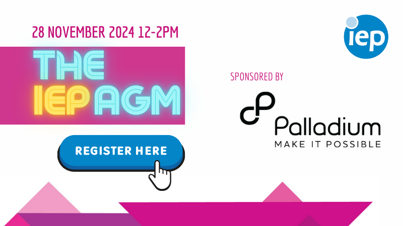 The IEP AGM 2024 is nearly here! Proudly sponsored by Palladium, this is not your average AGM, it’s a fantastic opportunity for our Members, Member Ambassadors, and Fellows to learn what the IEP has been doing for you over this past year. But that’s not all. We’ll also treat you to performances by talented musicians Jake Thompson and Tayo B and you will get the first chance to meet your newly elected Board Members!